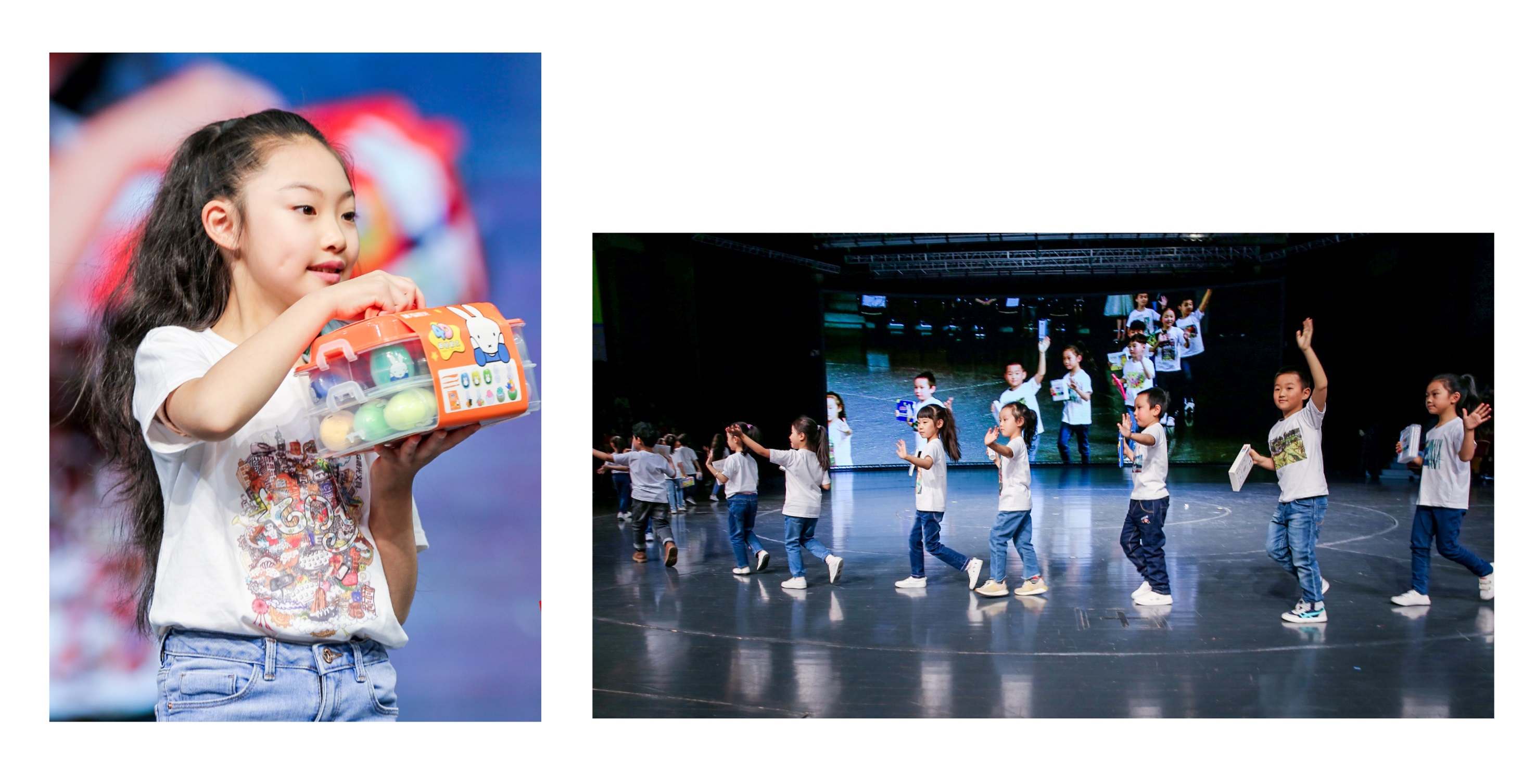 作為頒獎典禮的亮點之一,晨光MG Kids系列新品展示,現場小模特們穿著用獲獎畫作印制的T恤,手拿著MG Kids新品,完成一場靚麗地T臺走秀,也將頒獎典禮的現場氣氛推到了高潮。
