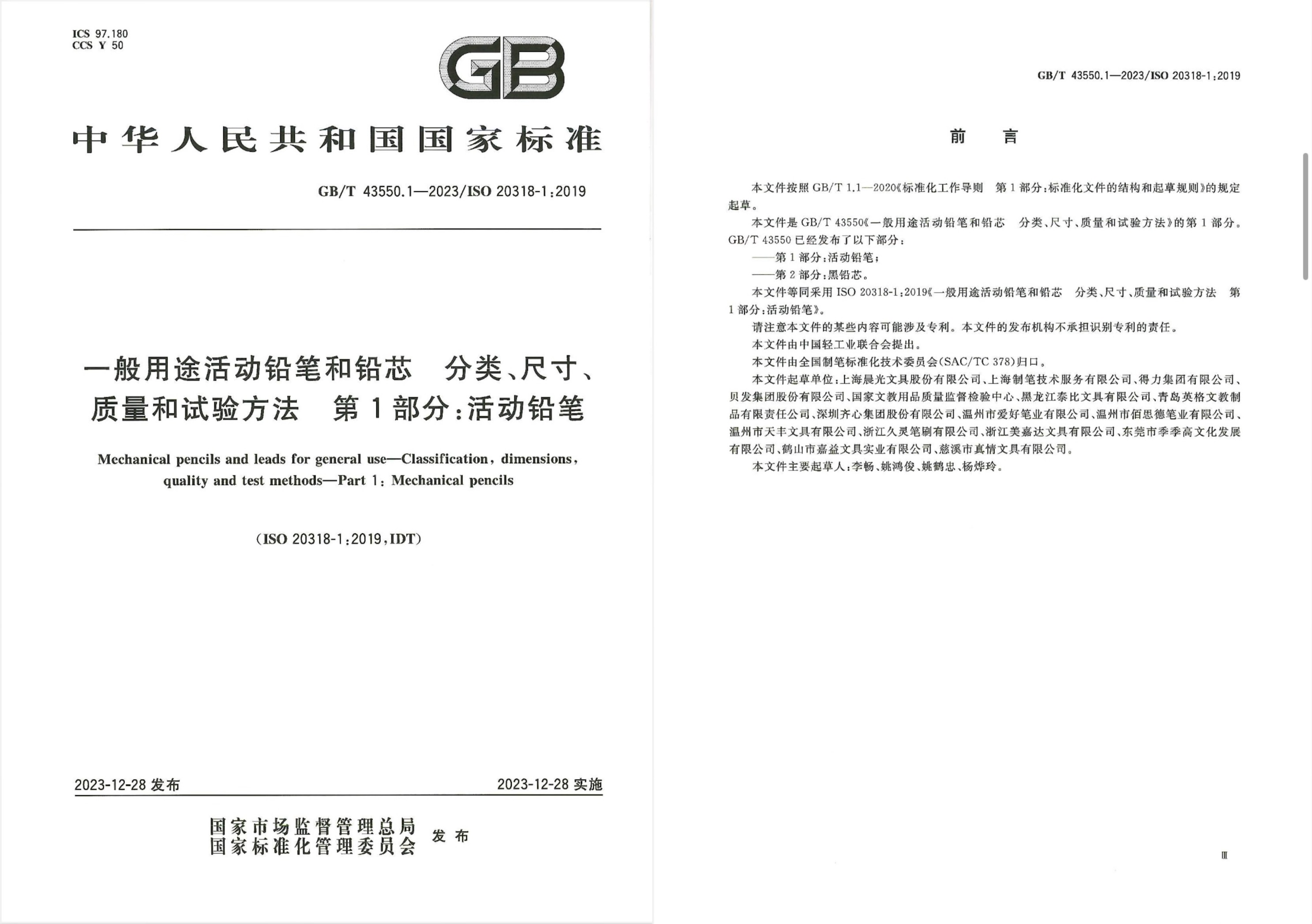 在標(biāo)準(zhǔn)制修訂方面,晨光堅持以市場需求為導(dǎo)向、以技術(shù)創(chuàng)新為支撐,深度參與多項關(guān)鍵標(biāo)準(zhǔn)的制定與優(yōu)化。晨光作為主要起草單位,全程參與國家標(biāo)準(zhǔn)《消費品質(zhì)量分級導(dǎo)則筆類產(chǎn)品》的編制,填補了筆類產(chǎn)品質(zhì)量分級領(lǐng)域的空白。此外,面對中性墨水圓珠筆速干化的發(fā)展趨勢,晨光牽頭開展市場調(diào)研,收集國內(nèi)外知名品牌暢銷產(chǎn)品數(shù)據(jù),推動修訂中性墨水標(biāo)準(zhǔn),持續(xù)引領(lǐng)行業(yè)標(biāo)準(zhǔn)的權(quán)威高度。