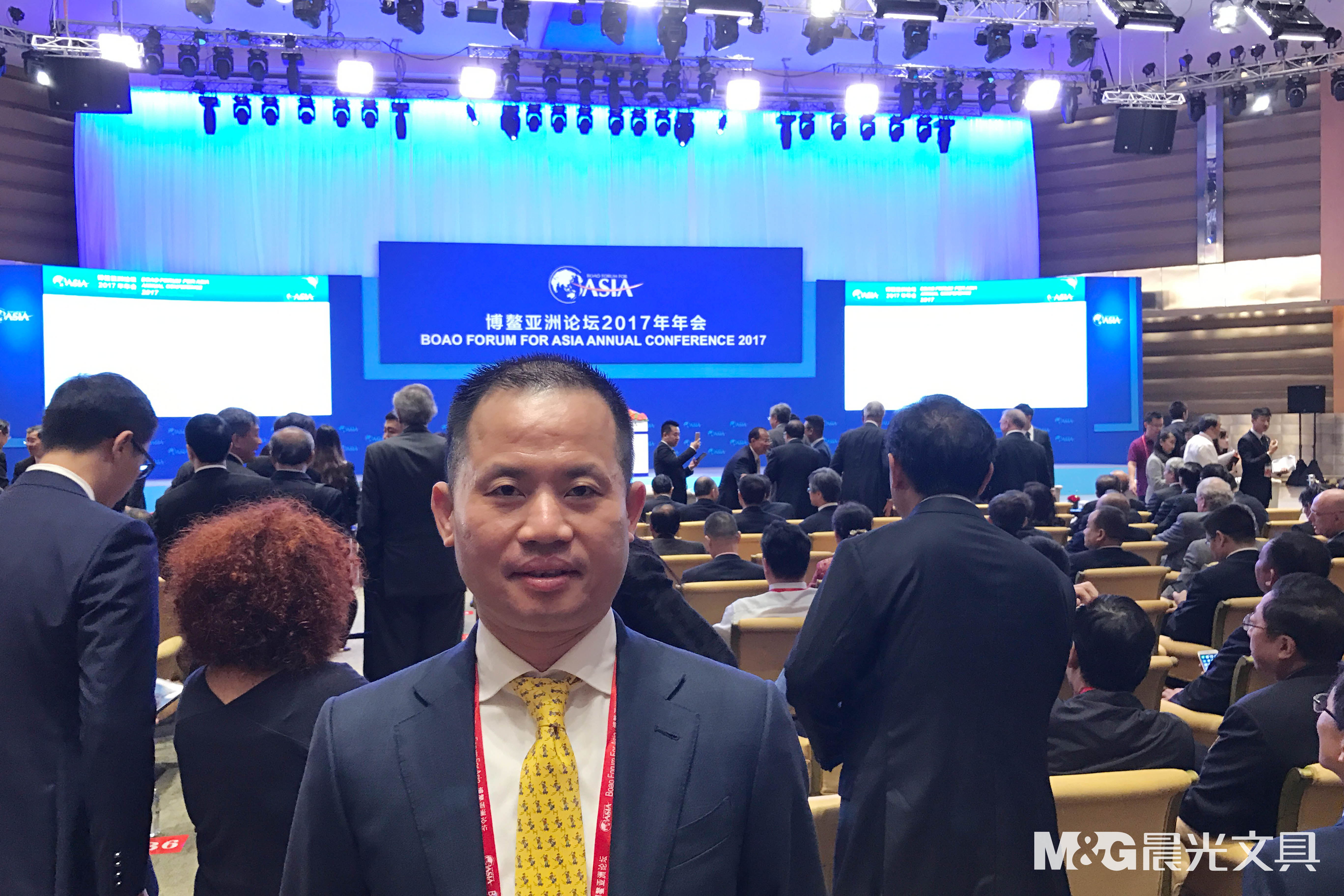 2017年3月23日,以“直面全球化與自由貿易的未來”為主題的博鰲亞洲論壇正式開幕。作為論壇指定文具供應商,此次是晨光文具持續十一年助力博鰲為大會組委會及參會的政商人士提供專業會務文具,再敘創新發展新篇章。晨光文具董事長陳湖文先生應邀參加了此次論壇。