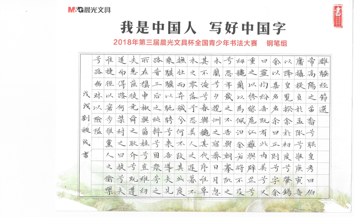 群賢雅集,翰墨飄香,傳承沒有終點,晨光文具杯書法大賽感恩每一位為書法文化的傳承而堅持的伙伴!2019,“我是中國人 寫好中國字”第四屆晨光文具杯全國青少年書法大賽于今天5月1日正式開啟!