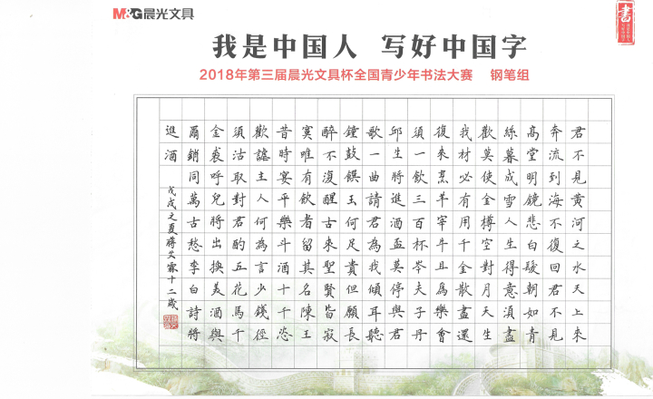作為一家整合創(chuàng)意價值與服務(wù)優(yōu)勢的綜合文具供應(yīng)商,晨光文具與成長教育、文化傳承息息相關(guān),所以更有義務(wù)提倡書法實踐,傳承發(fā)揚(yáng)國粹精髓。少年強(qiáng)則國強(qiáng),為鼓勵青少年學(xué)習(xí)書法,“我是中國人 寫好中國字”晨光文具全國青少年書法比賽已成功舉辦了三屆,隨著比賽影響力的不斷提升,目前已成為國內(nèi)青少年書法比賽中較具規(guī)模的品牌賽事之一。
